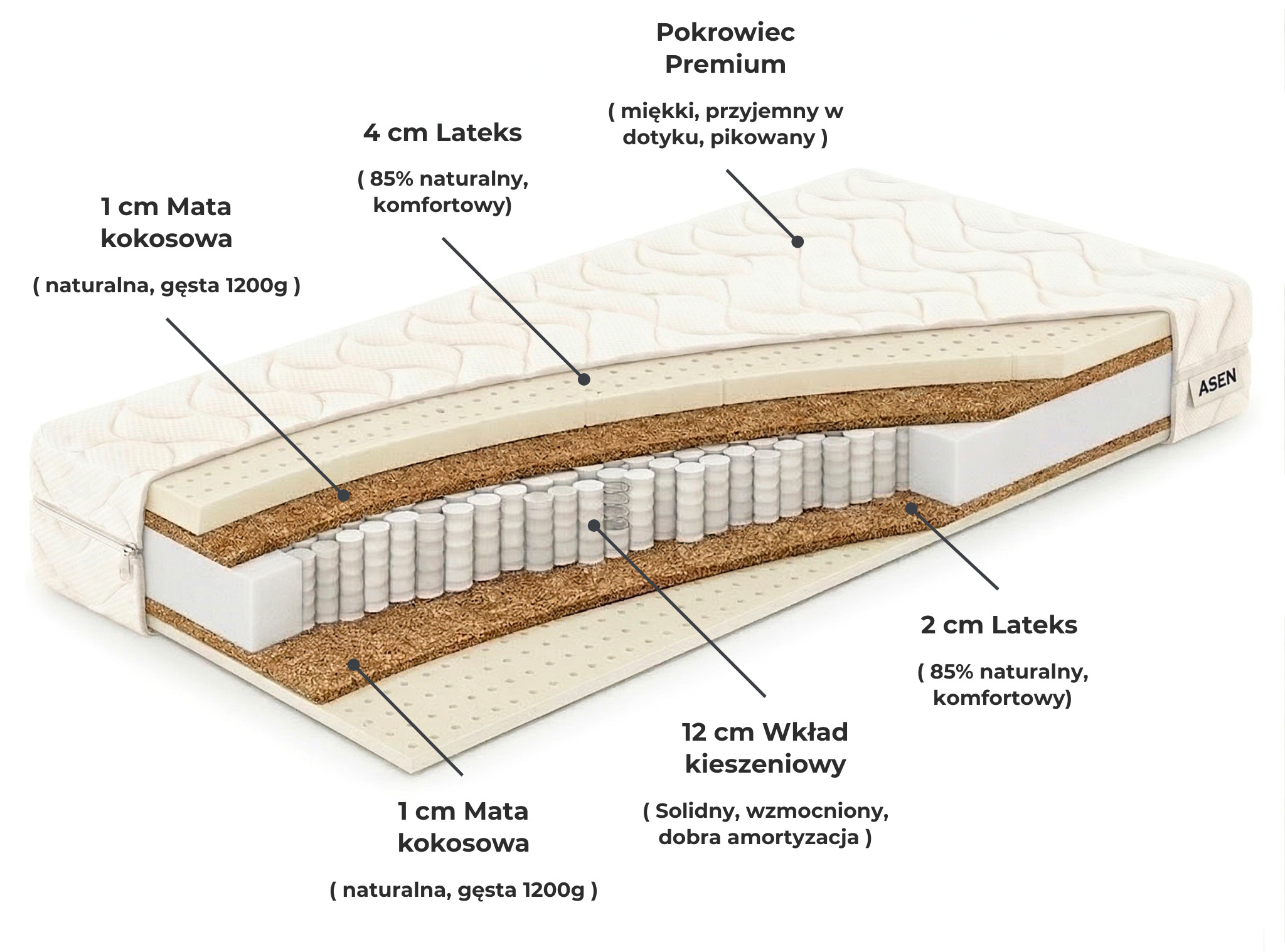 Dzięki temu materac jest trwały i solidny, zapewniając doskonały wypoczynek przez długie lata.